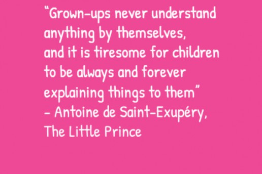 「大人って自分ひとりでは何も理解できないんだ。だから子供たちはいつもいつも説明してやらなくてはいけないことにうんざりするんだ。」ー サン=テグジュペリの言葉(「星の王子様」作者)