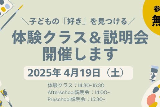 ブログ 【4/19(土)開催】子どもの「好き」を見つけるチャンス!Kodomo eduの無料体験クラス&説明会のお知らせ0 Comments1 Minute Starting April 2025! “Friday Night Childcare” – An Evening for Kids, Me-Time for Moms!0 Comments3 Minutes 2025.4月よりスタート!【ママの自分時間応援★金曜の夜保育】Friday Night Out0 Comments1 Minute Spring Camp 2025★スプリングキャンプ小学生クラス!受付開始!0 Comments1 Minute Spring Camp 2025★スプリングキャンプ幼稚園クラス!受付開始!0 Comments1 Minute 【サタデースクール 2025年4月よりスタート! 今なら友達と一緒で”入会金無料”!】0 Comments1 Minute