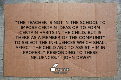 「教師はある決まった考えを押し付けるために、または子供にある習慣を身につけさせるために学校にいるのではありません。・・・」 ー ジョン・デューイ(アメリカの哲学者)
